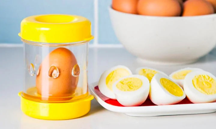 - Simply insert egg inside the tool, add some cold water, and shake it up!
