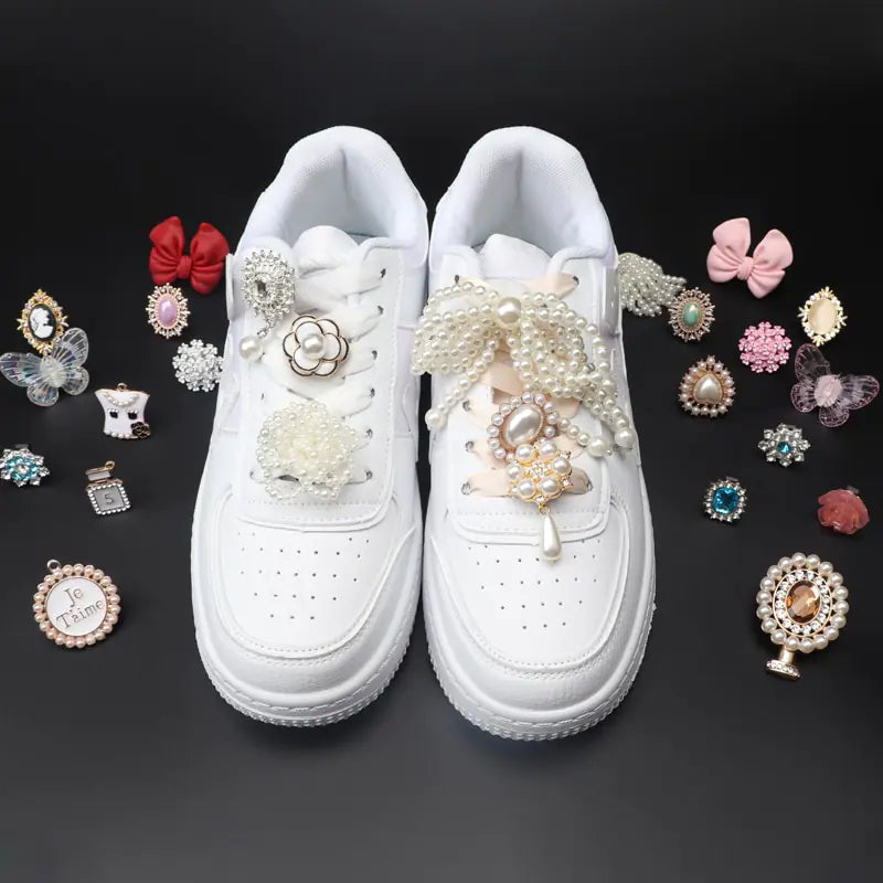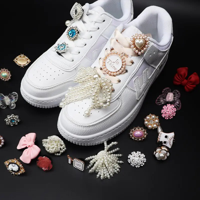 Welcome to a world where style meets convenience! Introducing our Shoelaces Clips Buckle Decorations—stunning shoe charms designed to transform your casual fashion shoes into a sparkling statement piece. Each charm is adorned with rhinestones and pearls, bringing a touch of elegance and glamour to your favorite sneakers.